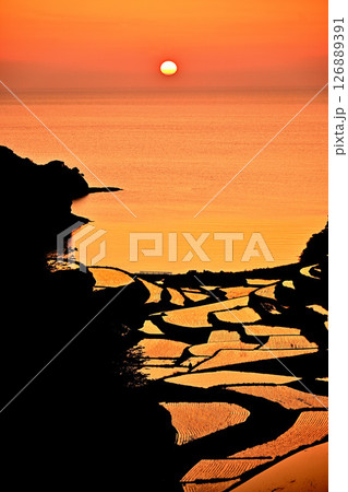 夕日・オレンジ色綺麗な棚田田園