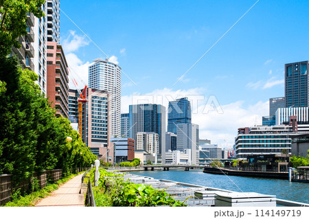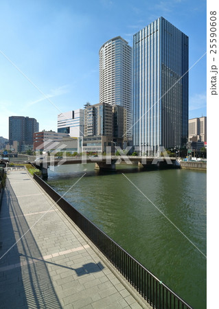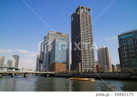 大阪中之島の堂島川沿いのビル群 (大阪府大阪市北区)