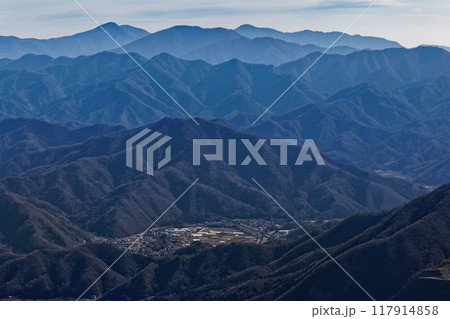 滝子山から見るリニア実験線と九鬼山・丹沢の山並み