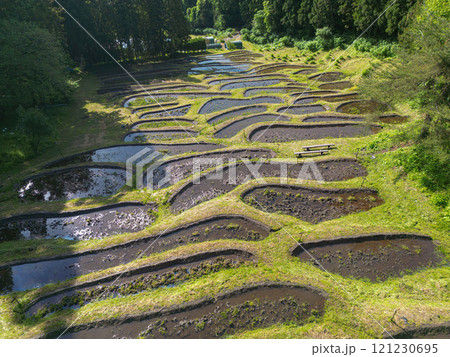 Rice Terrace Aerial Shot. Image of beautiful terrace rice field. Topview