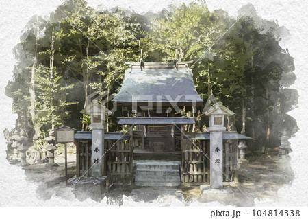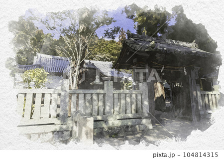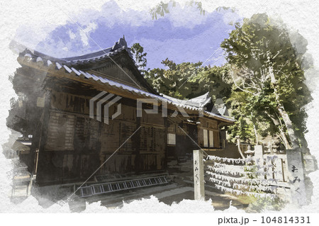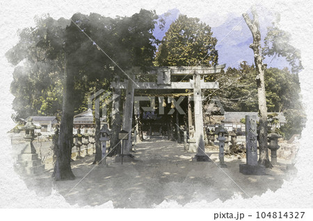 水彩画風 由加神社 和気靖国宮 岡山県和気町