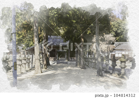 水彩画風 由加神社 和気靖国宮 岡山県和気町