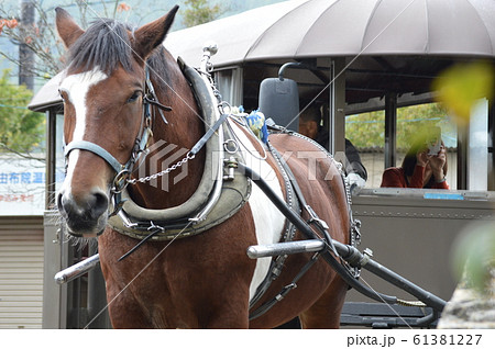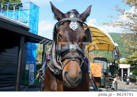 走る馬車 コントラストがはっきりした写真 湯布院辻馬車 ゆふいん 観光地ゆふいん