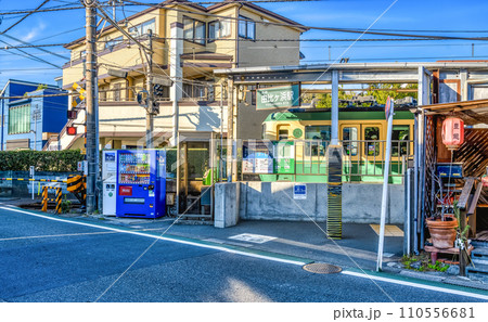 夕暮れの江ノ島電鉄の風景 由比ガ浜駅