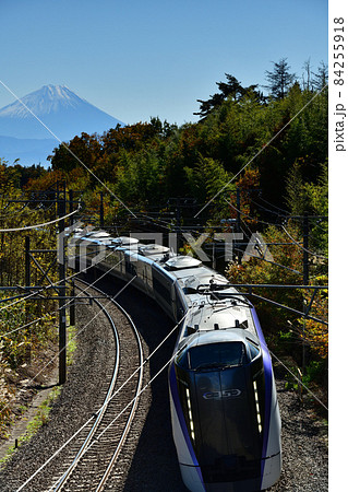 北杜市長坂町、富士をバックに進む下りスーパー特急あずさ
