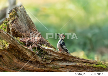倒木にとまるオオアカゲラ