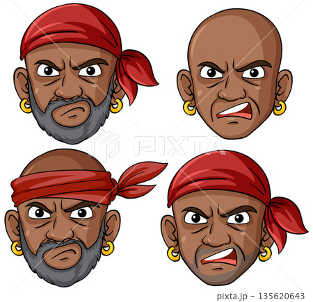 Angry Pirate Faces with Red Bandanas and Gold Earrings