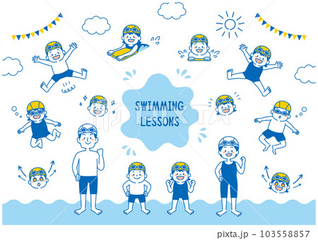 水泳 スイミングスクール 子ども コーチ イラスト セット