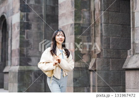 神戸北野の街を歩く女性