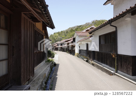 石見銀山 町並み地区のノスタルジックな古民家と緑豊かな山並み