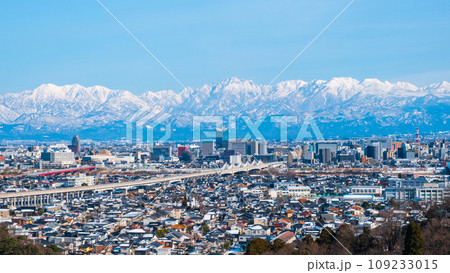 呉羽山公園から富山市街と立山連峰の眺め(冬)