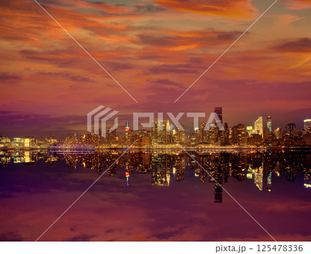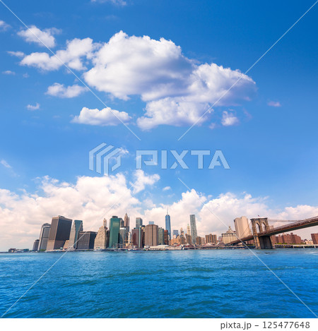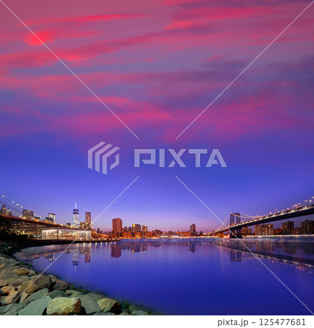 Brooklyn Bridge and Manhattan bridges sunset NY