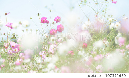 白いコスモス咲く爽やかな野原 岩手県 御所湖広域公園
