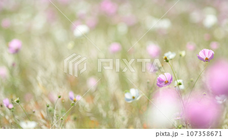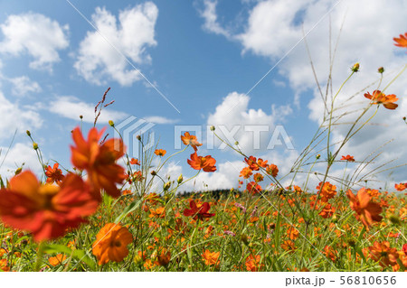 コスモス咲く爽やかな野原 岩手県 御所湖広域公園