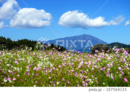 岩手山を望むコスモス畑 岩手県 御所湖広域公園