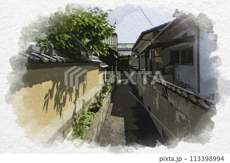 水彩画風 戸川家陣屋跡 岡山県都窪郡早島町