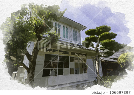 水彩画風 戸川家記念館 岡山県都窪郡早島町