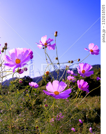 京都府木津川市に残る恭仁宮跡近くの畦道に咲くコスモス