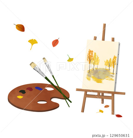 パレットと絵筆付きキャンバスイーゼルのイラスト