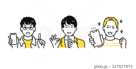 スマートフォン 喜ぶ 若い男性 アイコン イラスト セット