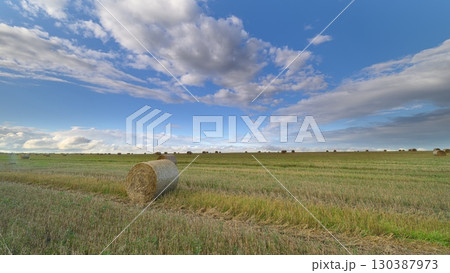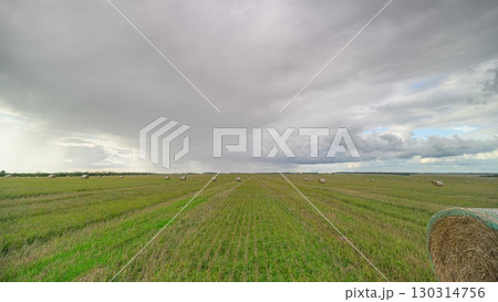 Explore the Scenic and Picturesque Rural Landscape Featuring Hay Bales Beneath a Beautiful Sky