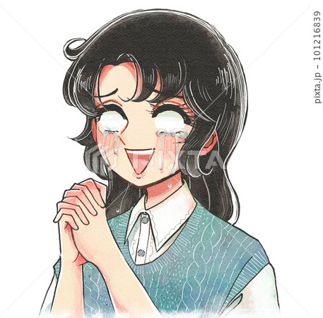 白眼をむいて号泣する、レトロな少女まんが風の女性