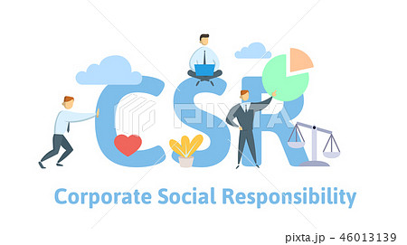 CSR, Corporate Social Responsibility. Concept with keywords, letters and icons. Flat vector