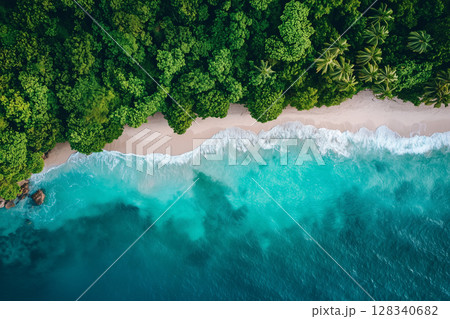 Aerial View of Beautiful Beach Along Ocean in Summer