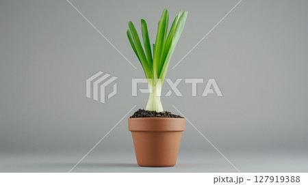 Leek vegetable clay pot and soil miniature house plant botanical decoration