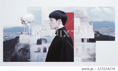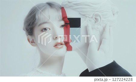 前衛的なアートファッションの女性ポートレート|クリエイティブ・未来感・コンセプトビジュアル