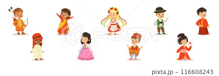 Kids Wearing National Costumes Of Different Countries Vector Set