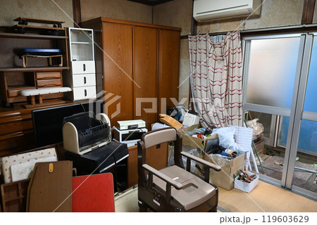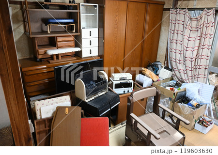 遺品整理や災害・汚部屋のイメージに[木造民家の中]