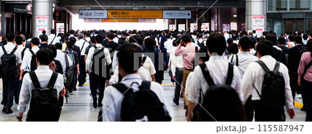 品川駅 の 港南口 に向かう 通勤 する ビジネスパーソン 【 日本社会 の イメージ 】
