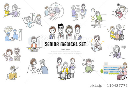 ベクターイラスト素材:ベクターイラスト素材:医療に関係するシニア人物セット