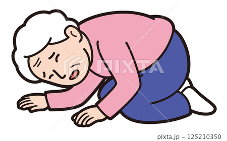 痛そうにうずくまるおばあさんの教材風ベクターイラスト