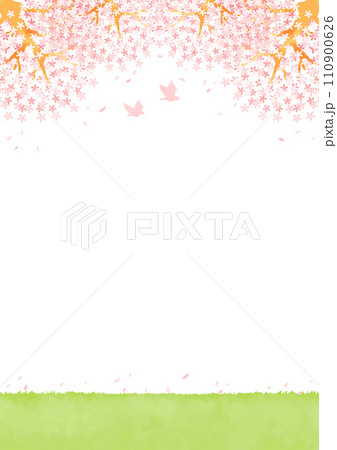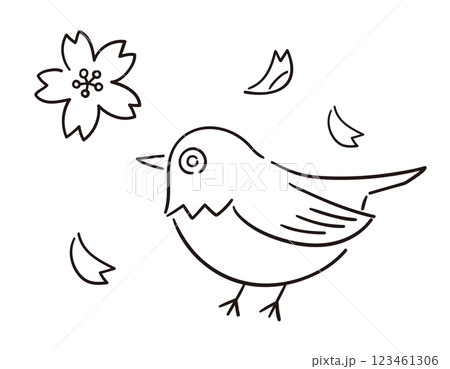 メジロと桜の花びら/春の風物詩/手書きのベクター線画イラスト