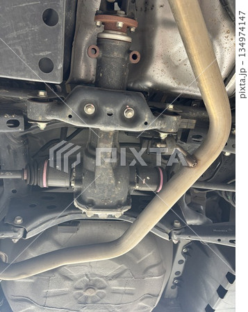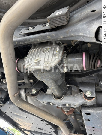 四駆の自動車のデフを下から見た
