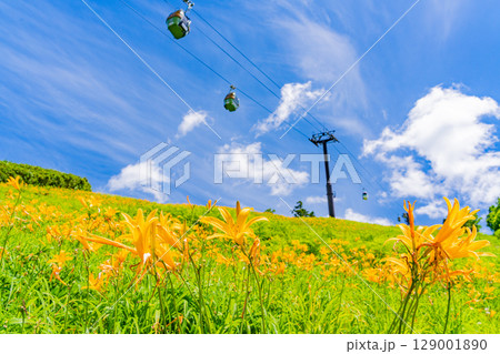 【長野県】志賀高原・東館山スキー場の斜面に咲くニッコウキスゲ(東館山高山植物園)