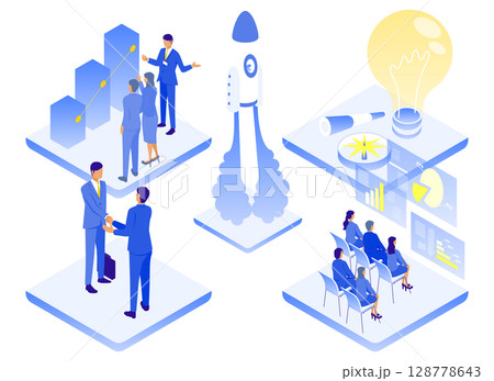 ビジネスの未来へ:アイデアと成長のコンセプトのアイソメイラスト