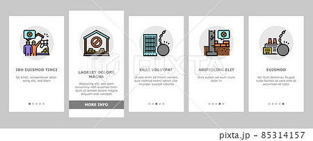 Dismantling Construction Process Onboarding Icons Set Vector
