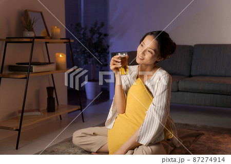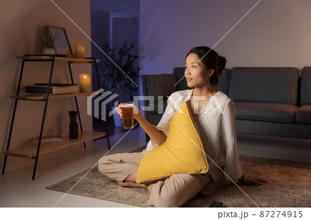自宅でくつろぐ女性 夜