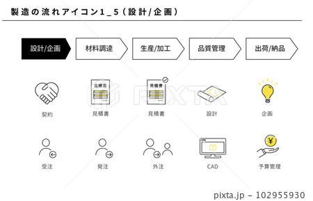 製造の流れのシンプルなアイコンセット1_5(設計/企画)、ベクター