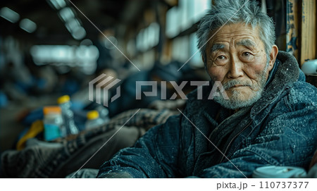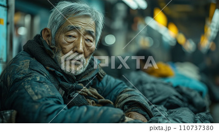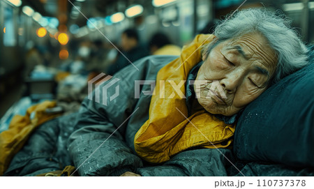 災害時に避難所で不安な一夜を過ごすアジア人高齢者