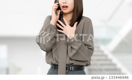 スマートフォンで話しながら驚く女性・ビジネスウーマン