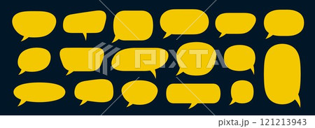 Empty yellow speech bubble set. Blank cartoon text box collection. Comic chat message balloon pack for poster, label, tag, banner, badge, sticker. Pop art doodle frame or border bundle. Vector