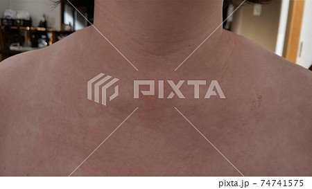 赤いブツブツのアトピー性皮膚炎、肌荒れが気になる中年女性