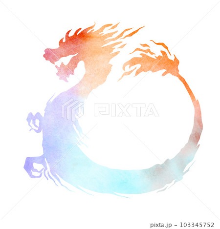 水彩の辰のシルエット手描きイラスト