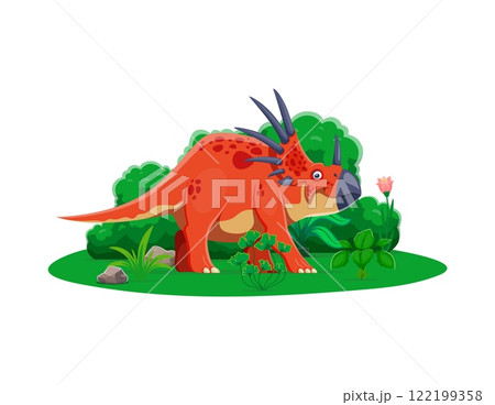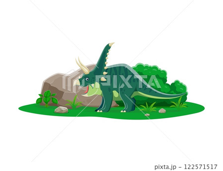 Dinosaur, prehistoric lizard Styracosaurus or dino animal, cartoon vector character. Jurassic or Cretaceous era Styracosaurus spiked dinosaur species for kid dino encyclopedia or paleontology museum