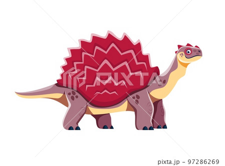 Cartoon Wuerhosaurus dinosaur character. Prehistoric creature or red dinosaur, extinct lizard or reptile isolated vector comic personage. Cretaceous period Wuerhosaurus beast with tail spikes