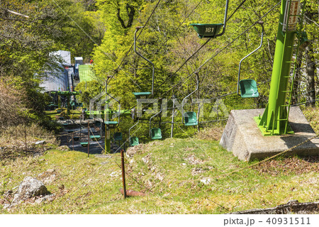 グリーンシーズンの車山高原スキー場の休止中リフト